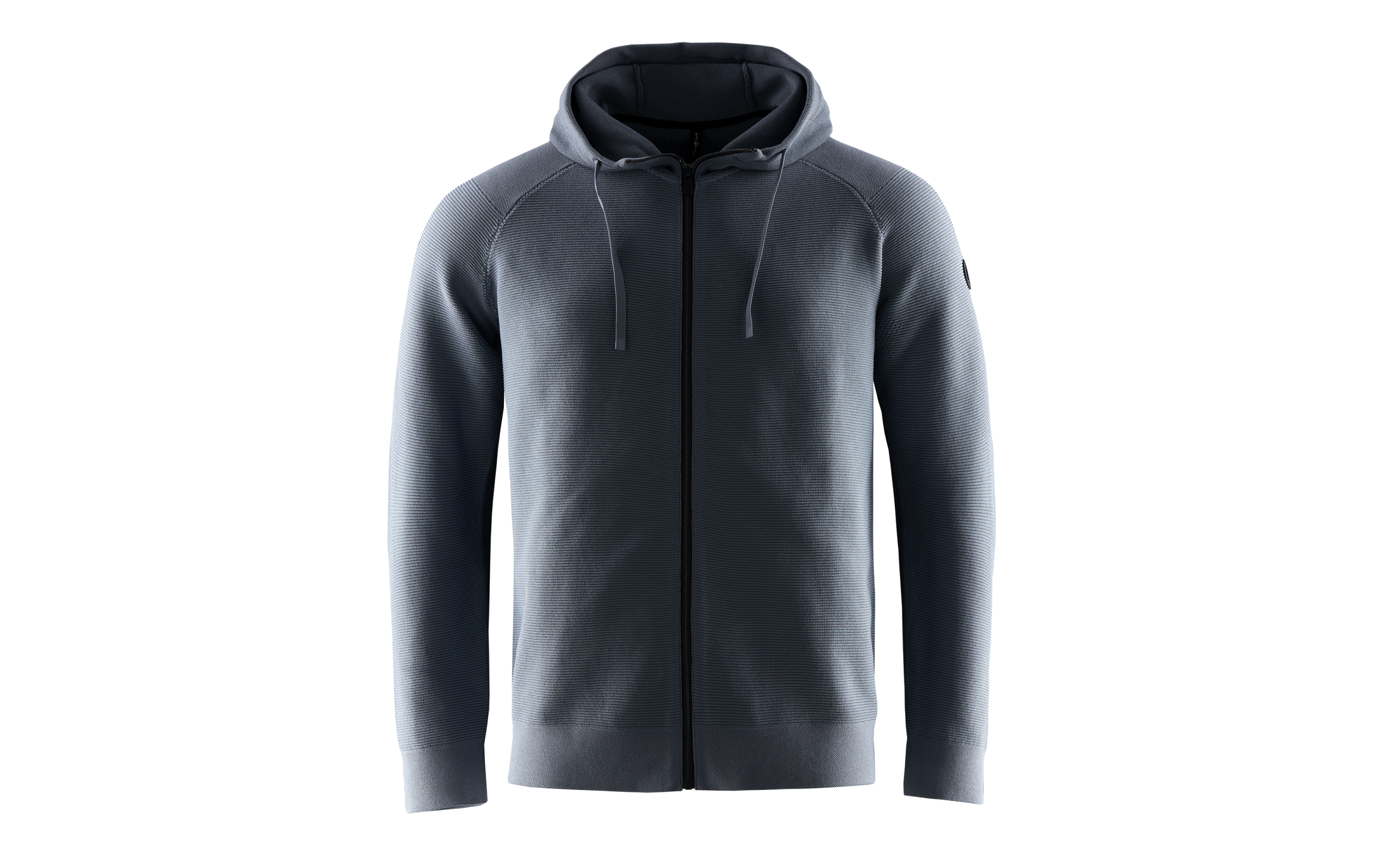 3D Seamless Knit Technology: To create this zip hood, we used a newly developed, innovative 3D knitting technique. This computer-programmed knitting machine creates new possibilities in the construction process by knitting three-dimensional, seamless structures with various knit designs. With this advanced method, the garment is crafted to feature high flexibility and freedom of movement in all directions, along with good breathability and comfort, while also minimizing fabric waste during the production process.