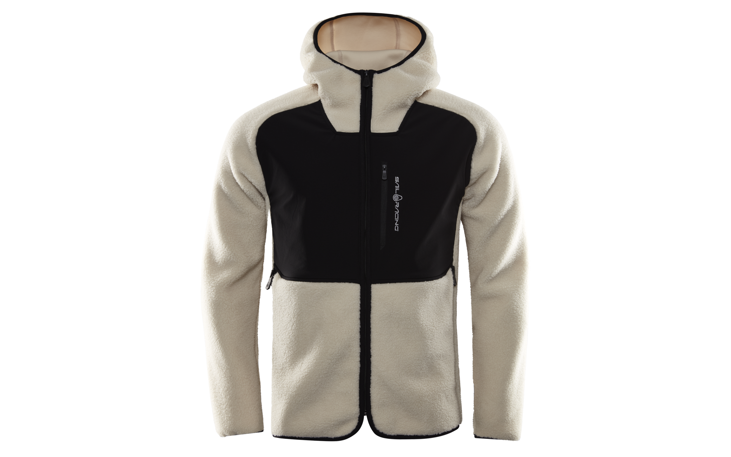 The pile jacket is designed with a Sail Racing logo on the chest pocket.