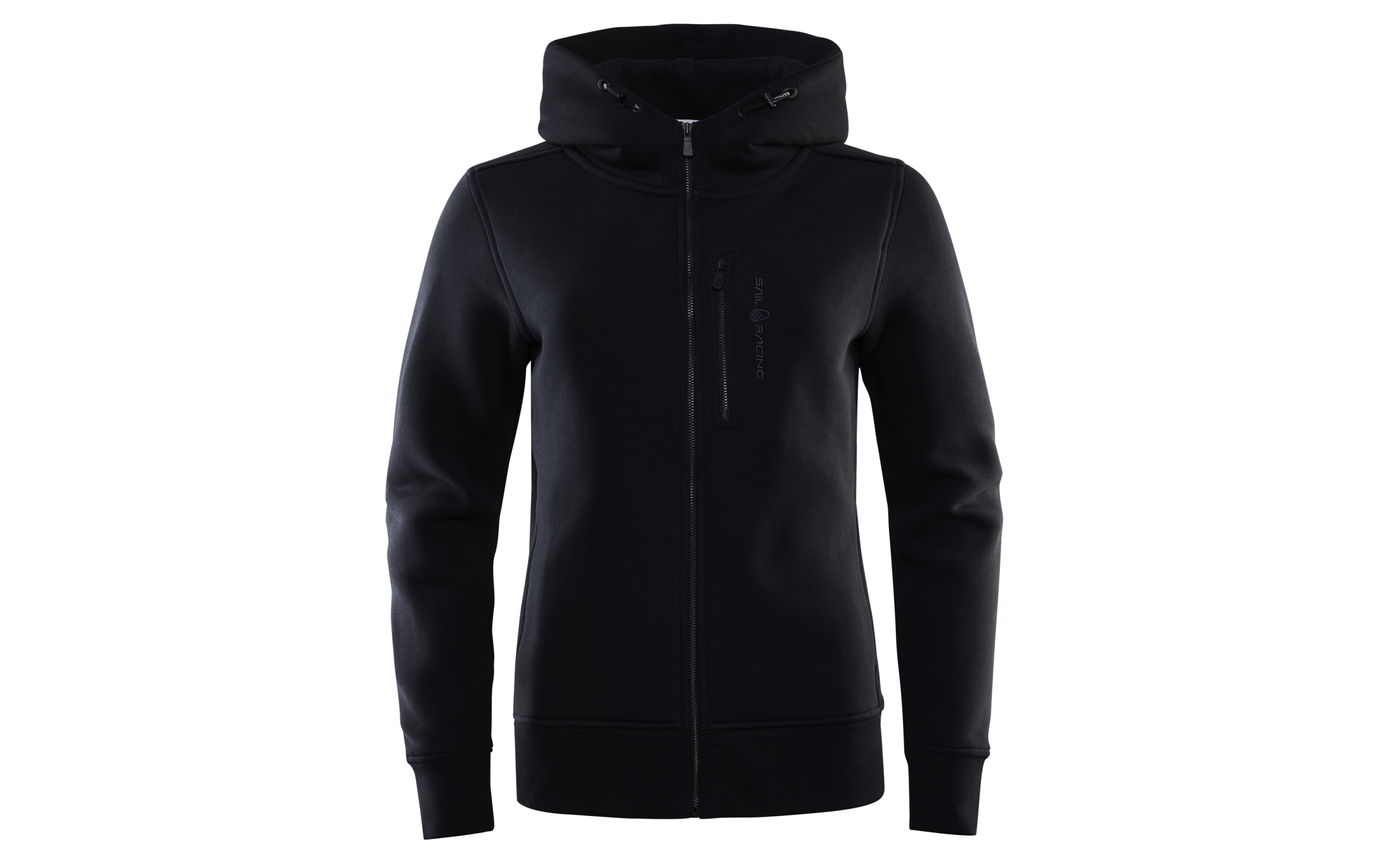 Women’s Gale Zip Hood made of a premium cotton and polyester blend. Chest pocket with zipper, open waist pockets and an adjustable hood. Ribbed cuffs on the sleeve ends and bottom hem. Sail Racing embroidery logo on the chest and a bloc logo on the top of the hood.